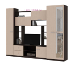 Недорогая гостиная с платяным шкафом, тумбой под ТВ и пеналом станет отличным решением оформления квартиры эконом класса и заменит сразу несколько предметов мебели.
