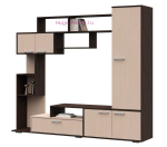 Маленькая гостиная Капри представляет собой тумбу под ТВ с пеналом и открытыми полками. Недорогая гостиная отлично впишется в небольшую комнату и решит проблему хранения книг и полезных мелочей.