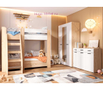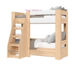 Двухъярусная детская кровать с удобной лесенкой и бортиком на втором ярусе. Кровать выполнена сочетании светлого оттенка дерева дуб сонома и белого глянца. Двухъярусные кровати подходят для небольших детских комнат, когда две отдельные кровати поставить затруднительно, а кровати с выдвижным спальным местом не обеспечивают должный комфорт для двух детей. Размер спального места 80х190 см подходит для детей разного возраста.