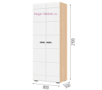 - 2-х створчатый шкаф со штангой для одежды на плечиках, (ШхВхГ) 800х2100х500 мм;