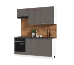 Недорогой кухонный гарнитур шириной 1.8 метра продается в комплекте со столешницей. Кухня 180 см с фасадами из качественного МДФ с матовым покрытием с фрезеровкой. Готовую кухню Альфа можно дополнить другими модулями из этой же серии, например напольными пеналами, фасадами для посудомоечных машин, дополнительными кухонными шкафами. Кухня полностью готова к установке, вся фурнитура и нижний цоколь в комплекте.