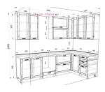 - Размер кухни: 280х140 см по стене (универсальная сборка на правую и левую стороны);