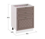 Кухонный шкаф нижний с тремя ящиками для модульной кухни Модена с фасадом МДФ в цвете дуб серый. Размеры шкафа: