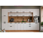 Пенал кухонный напольный с нишей для модульной кухни Призма с фасадом МДФ в цвете белый суперматовый и корпусом под дерево.
