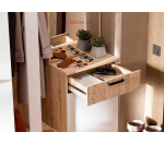 Шкаф и прихожую можно менять местами, модуль прихожей собирается как на правую, так и на левую сторону. шкаф оснащен штангой для верхней одежды и двумя полками. Модуль прихожей включает в себя настенную вешалку, тумбу для обуви с выдвижным ящиком и зеркало. за зеркальной створкой полки.