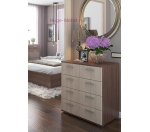 Недорогой комод в светлых тонах с пятью ящиками разного размера подходит для спальни и гостиной. Верхний ряд состоит из двух ящиков, выдвижные ящики оснащены роликовыми направляющими.