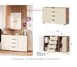 Вместительный комод шириной 120 см подходит для любого помещения, включая прихожую, гостиную и спальню. Комод представляет собой универсальную систему хранения: 4 выдвижных ящика для одежды и аксессуаров и две закрытые секции с полками. Створки комода открываются нажатием, ящики с надежной системой полного выдвижения. Современное сочетание матовых фасадов из МДФ сливочного цвета и декора под дерево помогут вписать комод в любой интерьер.