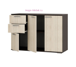 Недорогой комод Стандарт 3 отличается простым дизайном, благодаря чему он может органично вписаться в помещение любого назначения, оформленное практически в любом интерьерном стиле. Длинный комод можно назвать универсальным: с одной стороны за распашными створками находится вместительное отделение с полкой, а с другой имеются два выдвижных ящика на роликовых направляющих. Поверхность комода можно использовать как подставку для телевизора.
