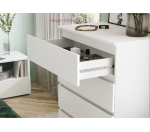 Удобный недорогой комод с 4 выдвижными ящиками на шариковых направляющих. Комод из серии мебели Хелен выпускается в двух цветах: белый и сочетание белого и дуба крафт.