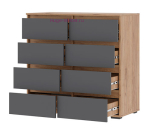 Вместительный серый комод шириной 1 метр. Комод 8 ящиков на шариковых направляющих полного выдвижения подходит для спальни, гостиной и детской. Серия мебели Хелен включает несколько комодов разного размера и с разным наполнением.