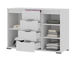 Недорогой комод белого цвета с выдвижными ящиками и створками. Длинный комод подходит для спальни и гостиной.