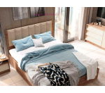Полутороспальная кровать с мягким изголовьем и размером спального места 140х200 см. Спинка кровати обита велюром бежевого цвета. Кровать продается в комплекте с ортопедическим основанием, обеспечивающим максимальный комфорт во время сна. Кровать сочетается с другой мебелью для спальни Рейн и мебелью Соната фабрики Стендмебель. Полутороспальная кровать компактных размеров вписывается как в городской, так в загородный интерьер.