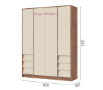 - 4-х створчатый шкаф со штангой, полками и 6 выдвижными ящиками (ШхВхГ): 1600х2100х500 мм;