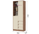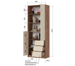 - Шкаф стеллаж с открытыми и закрытыми полками и 3 выдвижными ящиками (ШхВхГ): 800х2100х400 мм.