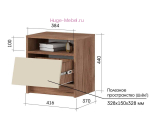 - Прикроватная тумба с выдвижным ящиком и открытой полкой (ШхВхГ): 416х436х330 мм;