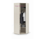 Недорогой угловой шкаф с глянцевыми белыми фасадами из серии мебели Симба. Внутри шкафа полки и штанга, а так же выдвижные ящики.