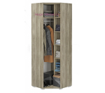 Недорогой угловой шкаф Наоми для гостиной и спальни. Угловой шкаф с матовым фасадом МДФ серого цвета оснащен штангой для одежды на плечиках и полками.