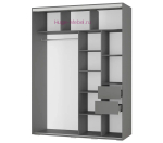 Недорогой шкаф купе шириной 160 см с зеркальной дверью. Стильный шкаф-купе темного серого цвета графит с двумя створками, зеркальной и створкой со стеклом белого цвета. Внутри шкафа штанга для одежды, два отсека с полками и два выдвижных ящика, наверху три отсека для хранения. Шкаф купе Крафт-6 ШКК-06 высотой 217 см подходит для любых помещений.