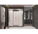 Недорогой шкаф-купе 160 см без зеркал с двумя распашными и двумя раздвижными дверями. Современное цветовое решение позволяет сочетать шкаф купе с другой мебелью фабрики Стендмебель. Внутри шкафа три отсека: центральный с полками и два боковых отделения со штангами для одежды.