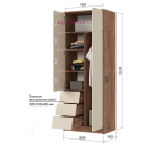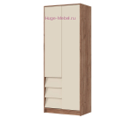 Недорогой 2-х створчатый шкаф Рейн с 3 выдвижными ящиками, полками и штангой для одежды. Ящики со скошенными фасадами открываются захватом, створки открываются нажатием. Ширина шкафа 80 см позволит установить его в небольших помещениях или прихожей. Современная гармоничная цветовая гамма мебели Рейн: теплый оттенок дерева и матовые светлые фасады цвета кашемир.
