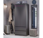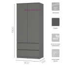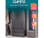 Недорогой 2-створчатый шкаф серого цвета из серии "Симпл" ШК-03 графит. Шкаф отличается лаконичный дизайн и качественная фурнитура: дверцы открываются нажатием, ящики полного выдвижения с интегрированным срезом вместо ручек. Внутри шкафа два одинаковых по ширине отделения: отсек со штангой и отсек с четырьмя полками, внизу два вместительных ящика.