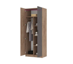 Распашной 2-створчатый шкаф Орегон шириной 80 см со штангой и полками для одежды. Небольшой шкаф для одежды подходит для прихожей, гостиной и спальни и сочетается с другой мебелью серии Орегон. Корпус шкафа выполнен в теплом оттенке дерева, матовый фасад серого цвета из МДФ с фрезеровкой в виде ассиметричных линий. Шкаф без зеркала, высота 210 см, ширина полок 38 см, длина штанги для одежды 36,8 см.
