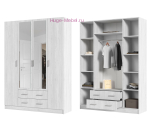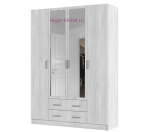 Недорогой распашной шкаф с выдвижными ящиками подходит для прихожей или спальни. Шкаф Квадро с 4 дверцами и выдвижными ящиками вмещает большой гардероб. Несмотря на невысокую стоимость, шкаф отличается отличным качеством и продуманным наполнением. Внутри шкафа три отделения: два отсека с полками по бокам и отделение со штангой для одежды по центру.