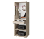 Невысокий шкаф для посуды Наоми с выдвижным ящиком. Недорогой шкаф со стеклом для гостиной в современном стиле с матовым серым фасадом МДФ. Шкаф витрина сочетается с другими шкафами и ТВ тумбами из серии Наоми (модульная гостиная).